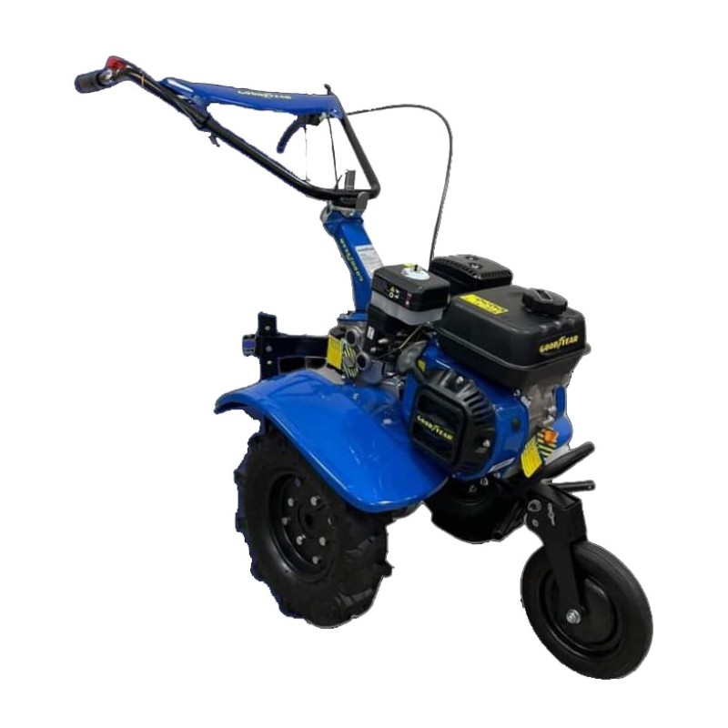 La Motoazada Goodyear GY703TL es un motocultor a gasolina diseñado para preparar la tierra en jardines, huertos y otros entornos agrícolas. Tiene un potente motor de 7 caballos de fuerza y una transmisión de tres velocidades, incluida una marcha atrás. Ideal para una variedad de tareas agrícolas, que incluyen: